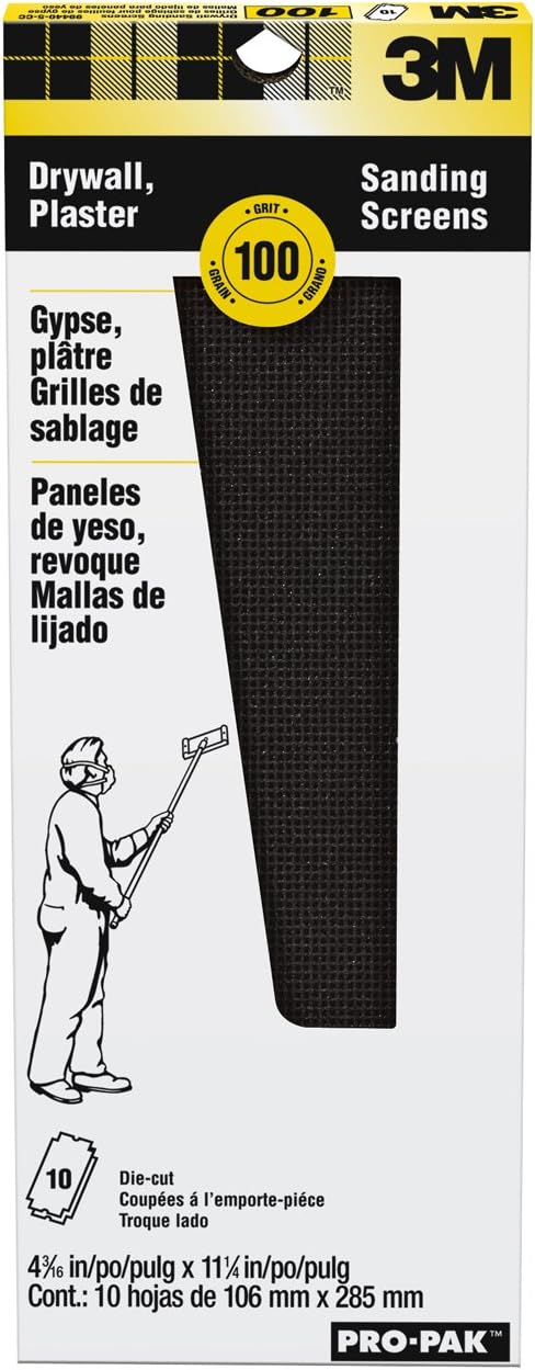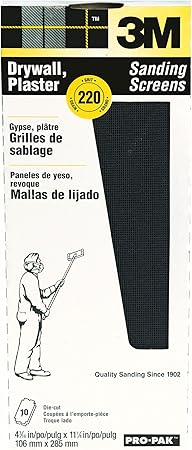 3M Pro-Pak Drywall Sanding Screens 99439NA 180 grit 10 sheetspk. 3M 9089NA Drywall Sanding Screen 4 316in x 11 14 in 2-Sheet Fine-Grit Pre-cut in multiple sizes Die-cut to fit most drywall sanding Tools Heavy duty backing for maximum durability during stock and sanding operations Can also be used for sanding wood. Pre-cut in multiple sizes.